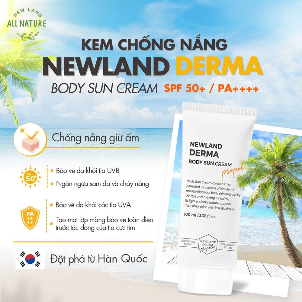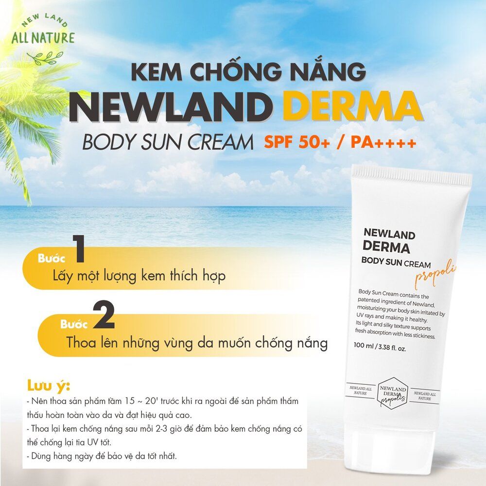 1. Tên sản phẩm: Kem chống nắng toàn thân Newland Derma Body Sun Cream SPF 50+ và PA++++